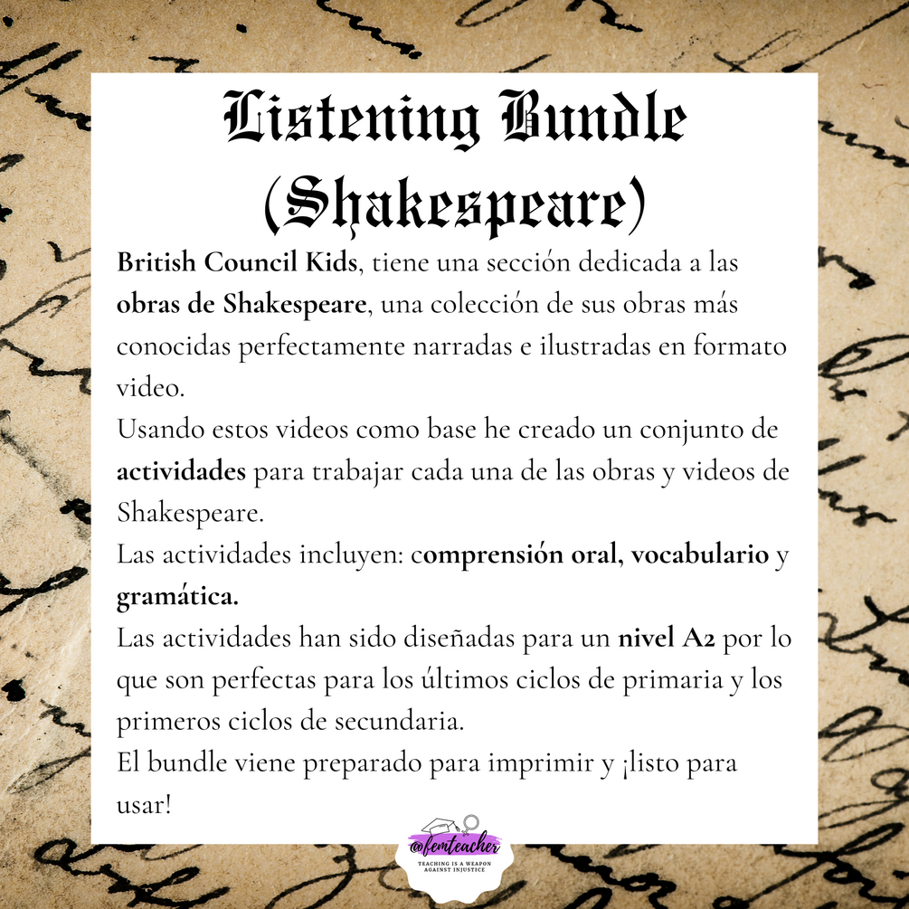 Usando estos videos como base he creado un conjunto de actividades para trabajar cada una de las obras y videos de Shakespeare.