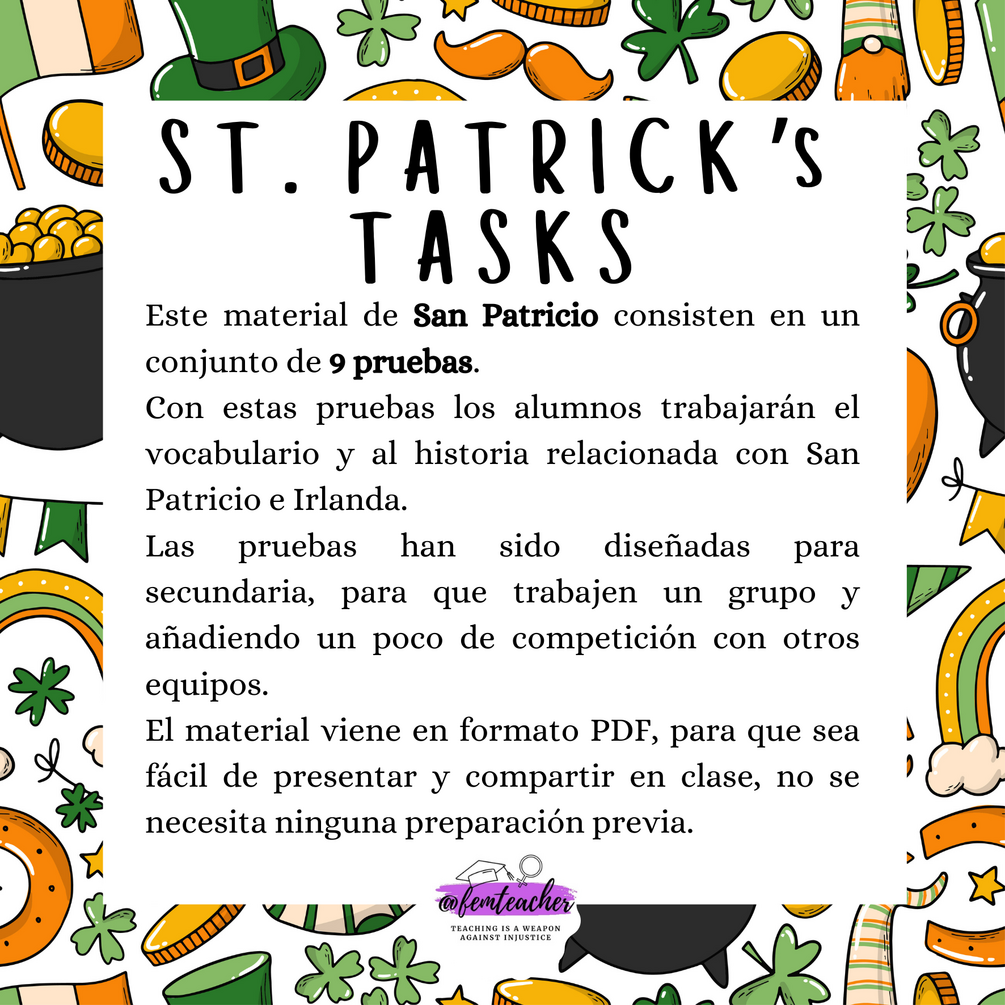 Este material de San Patricio consisten en un conjunto de 9 pruebas.