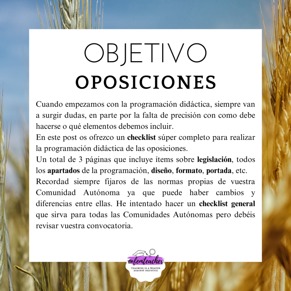 Checklist completa para la realización de tu programación didáctica de las oposiciones de reposición.